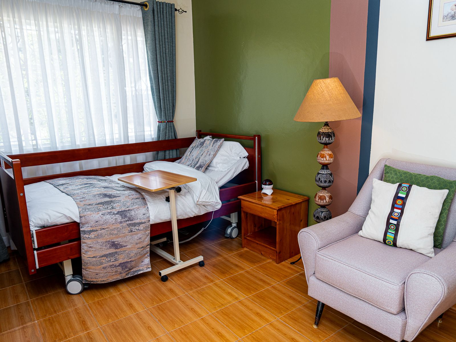 Care is more than tasks—it’s hospitality, reassurance, and the feeling of being welcomed. This space supports daily routines: tea, hydration prompts, and calm check-ins that help prevent avoidable health dips.